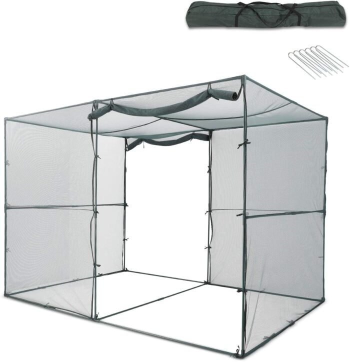- [POLYESTER NETTING & FLAT ROOF] The crop cage is made of polyester, keeping birds, critters or other wildlife out of your place, protecting vegetables, fruits, flowers, etc. The netting helps your plants get nourished by sunlight and rain. The flat roof provides enough space to grow plants.